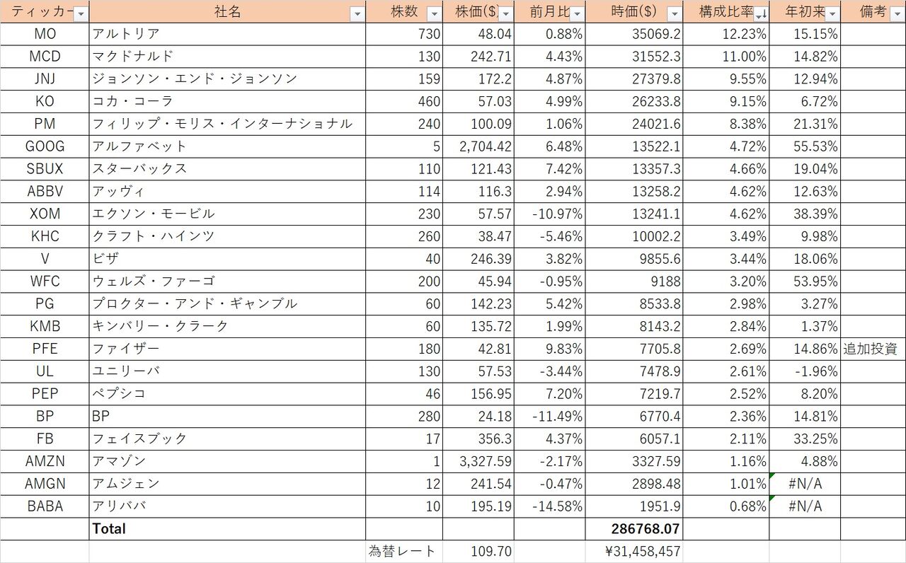 ポートフォリオでは、エイリスキャピタルを売却してファイザーを購入しました。そのおかげかポートフォリオがすっきりした感じがします。