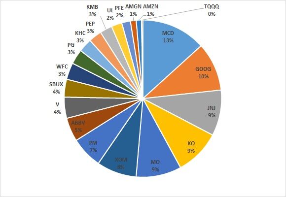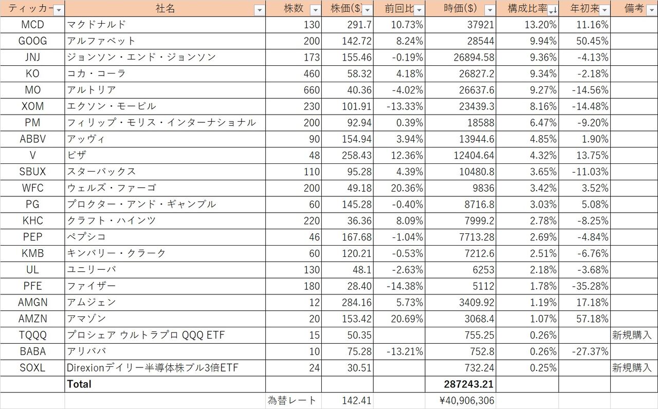 2023年ももうすぐ終わりますが、今年のパフォーマンスはドル建ての資産では微増といったところで、S&P500の+24%を大幅に下回ってしまいました。保有銘柄を見ると、アルファベットが健闘しましたが、タバコ、エネルギー、医薬品などマイナス圏に沈んだ銘柄が多く、MCDやVも上昇はしましたが10%程度とインデックスの上昇率とは差があります。ここ数年はそういう年が多いですが、今年もBig Techを保有しなければ良いリターンを上げるのは難しい年となりました。